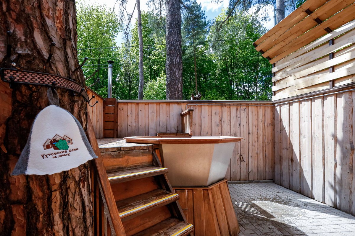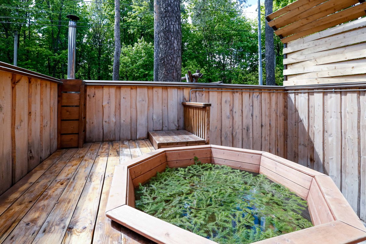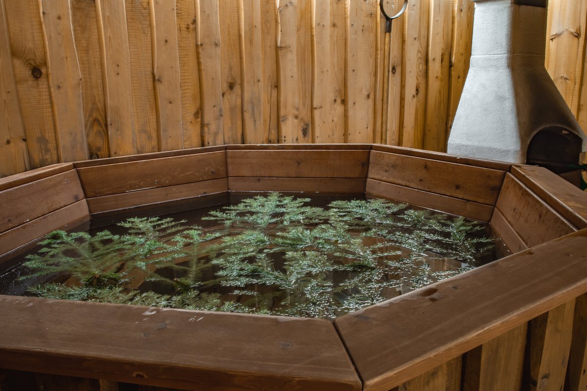 Посещение запомнилось приятным комбо из бани, купели и чана, особенно порадовала баня на дровах – пар был отличный. После жаркой бани выходишь на улицу, ныряешь в ледяную купель, а затем прыгаешь в теплый чан с пихтовым ароматом, который создает особую атмосферу.