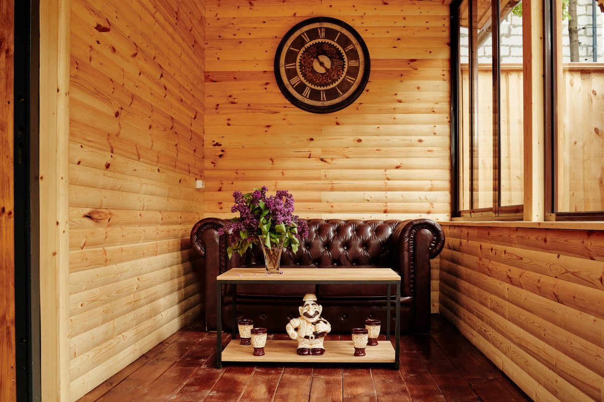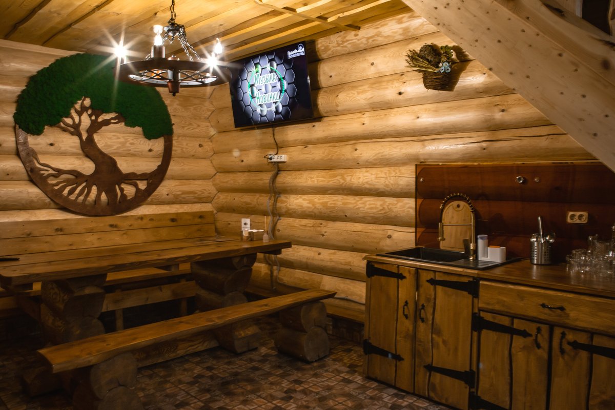 Здесь очень тепло, чисто и уютно. Все картины подобраны в едином стиле, и находиться здесь очень приятно. Есть колонка, караоке и джакузи. Все сделано из дерева, что радует глаз. Мы посетили это место по случаю дня рождения и хотели сходить в баню.